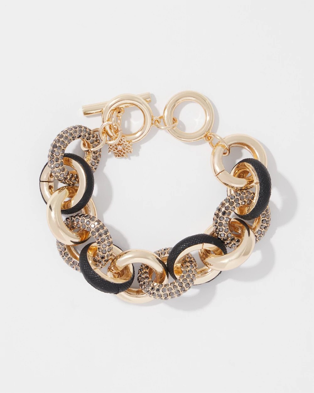 Black Leather + Pavé Link Bracelet