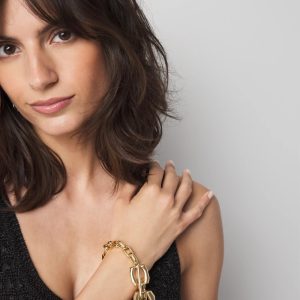This statement piece is made with raffia, a natural material that always has a summer vibe. The gold accent adds the right amount of shine. Pair with other pieces from our Raffia + Crystal Collection.