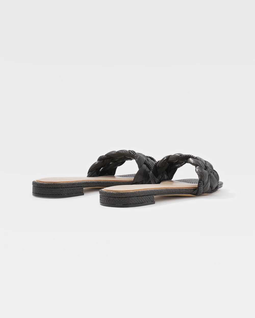 A simple everyday summer flat for dresses or jeans, designed with a braided upper that is embellished with crystals. Wear them with other pieces in the Raffia + Crystal Collection including a tote, floppy hat and belt.