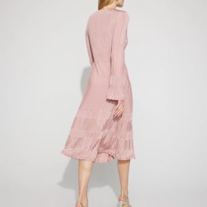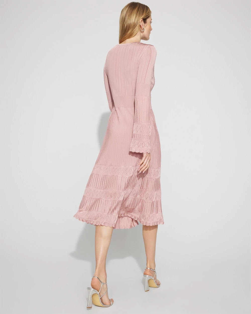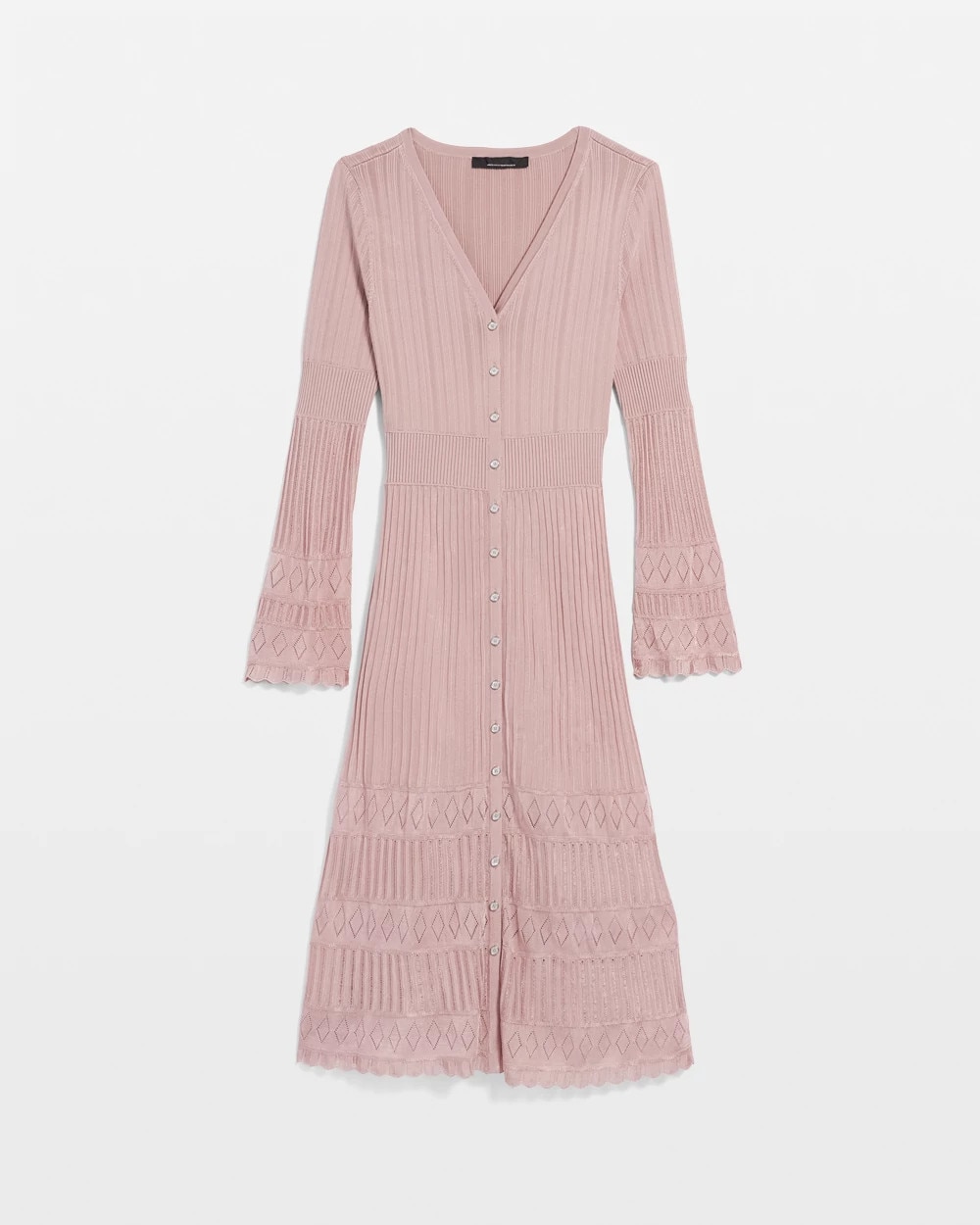 Spun from a rayon and nylon yarn, this polished casual sweater midi is stretchy + lightweight, making it an easy look to transition between seasons. A row of center front buttons gets you in and out. Scalloped trim at the hem and cuffs up the style factor. A pretty dress to you can wear to any occasion.