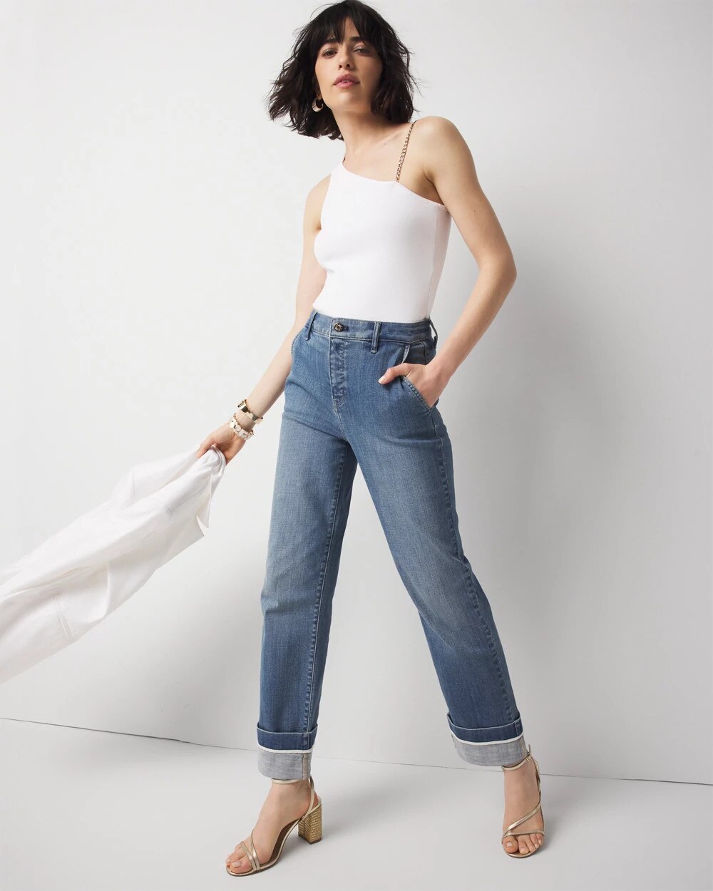 Add this tank to your roster of going out tops. Made from soft, ribbed pima cotton, this sleeveless tee has a chain strap on the left, and a classic tank strap on the right, creating an asymmetric neckline.