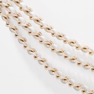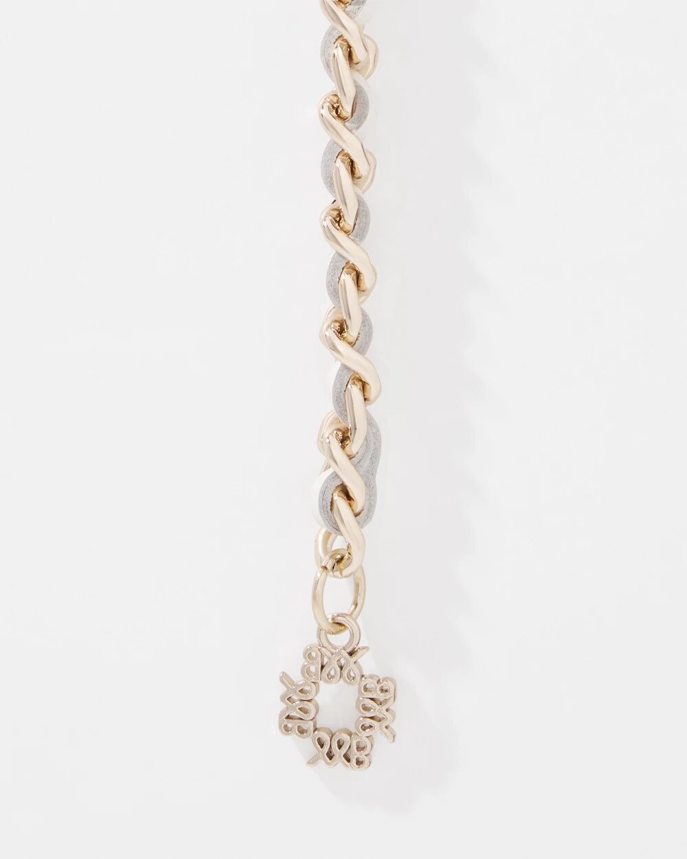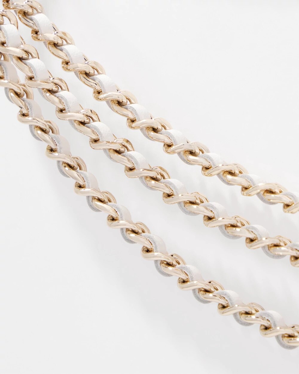 Top off your spring look with this soft gold chain belt. Secured with a subtle fastener, it features ecru weaving and layers nicely on the hips. Make it the main show when styled over your favorite spring and summer looks.