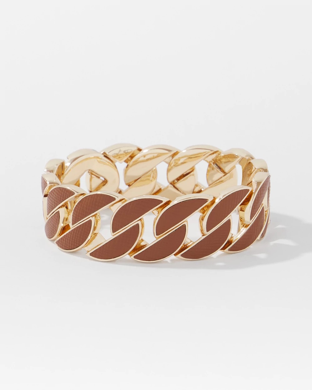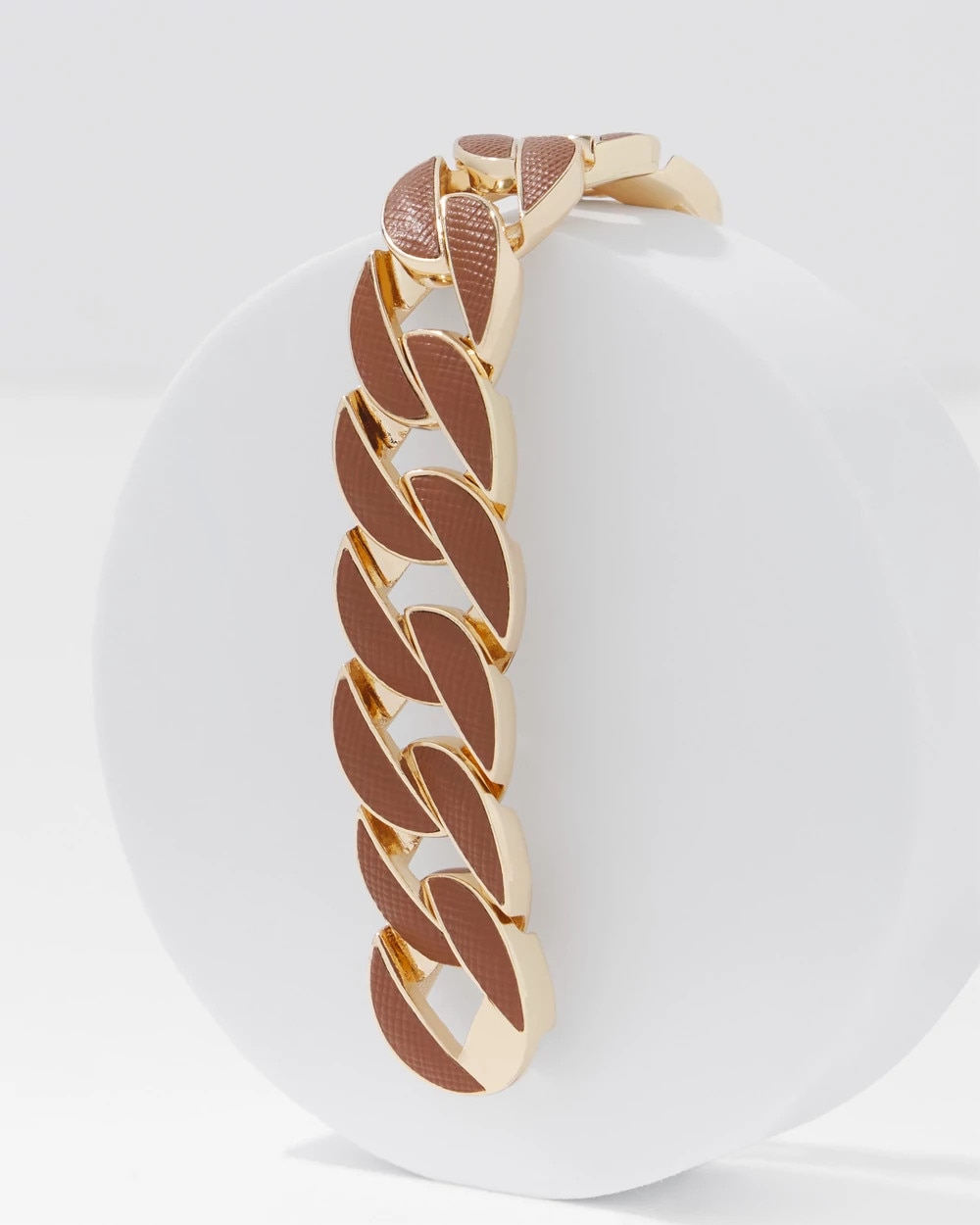 Cognac Textured Leather Link Bracelet