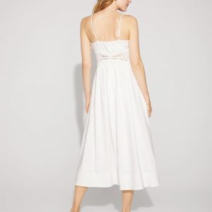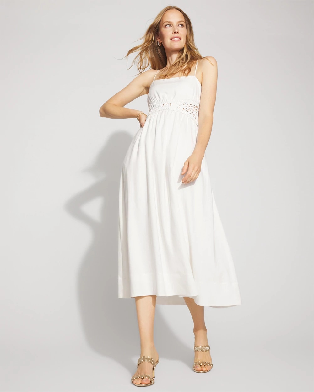 Spaghetti straps and a wide hem are two details that define this special summer dress. But we’re all about the exquisite, crocheted waist band know as soutache embroidery, that elevates this dress to another level.