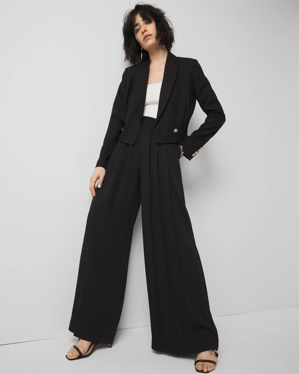 Cut from a soft, lightweight lyocell fabric, this double-breasted blazer has a shorter silhouette with intricate pleating at the hem. Crest buttons are a finishing touch. This jacket will work great with jeans, or pair it with its matching pant for a summer suit look.