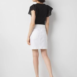 Cut from a soft cotton-blend fabric that has a washed denim look, this tailored skort has a fold over front with single button detail. Wear it with our matching WHBM® Two-Button Denim-Look Studio Blazer for work, or on its own with your favorite top.