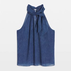 Denim Print Chiffon Halter Top