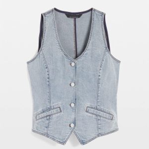 This denim vest is designed to go with your favorite wide leg jeans for a head-to-toe look. Made with seam details and front pockets, it’s also a versatile piece you can pair with shorts.