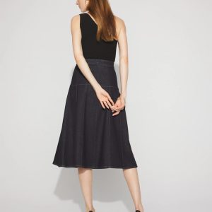 Drop Waist Denim A-Line Midi Skirt