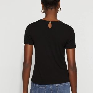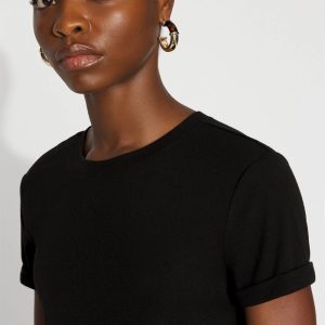 Crafted from luxe brushed rib fabric that’s comfortable but still refined, this timeless tee has a faux pearl button closure at the back of the neck. It’s a subtle, feminine touch we know you’ll love.