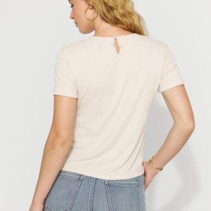 Crafted from luxe brushed rib fabric that’s comfortable but still refined, this timeless tee has a faux pearl button closure at the back of the neck. It’s a subtle, feminine touch we know you’ll love.