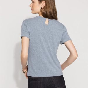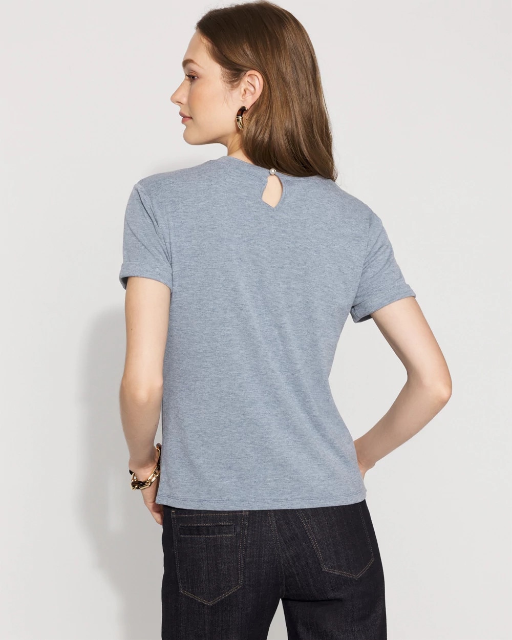 Crafted from luxe brushed rib fabric that’s comfortable but still refined, this timeless tee has a faux pearl button closure at the back of the neck. It’s a subtle, feminine touch we know you’ll love.
