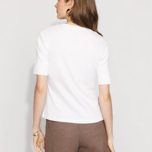 We added a charm to the V-neckline of this cotton tee for a subtle + stylish touch. The elbow sleeve is the perfect amount of arm coverage too.