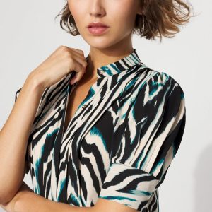 A simple + stylish shirt for work, it is designed with elbow sleeves, a Y-neckline and shirt cuffs. Wear it with your favorite black pant.