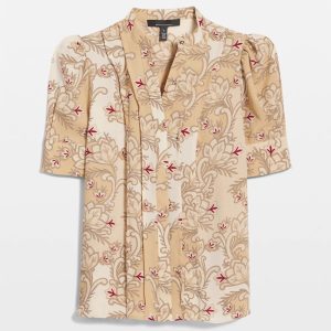 A simple + stylish shirt for work, it is designed with elbow sleeves, a Y-neckline and shirt cuffs. Wear it with your favorite black pant.