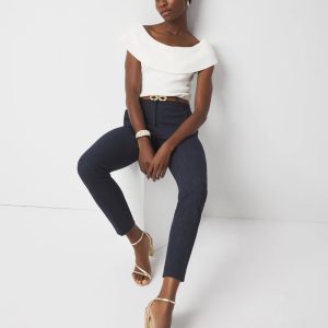 Our bestselling Elle Slim Ankle Pant now in this cotton-blend fabric with a washed denim look that is perfectly tailored. Pair with matching WHBM® Two-Button Blazer and Longline Bustier.