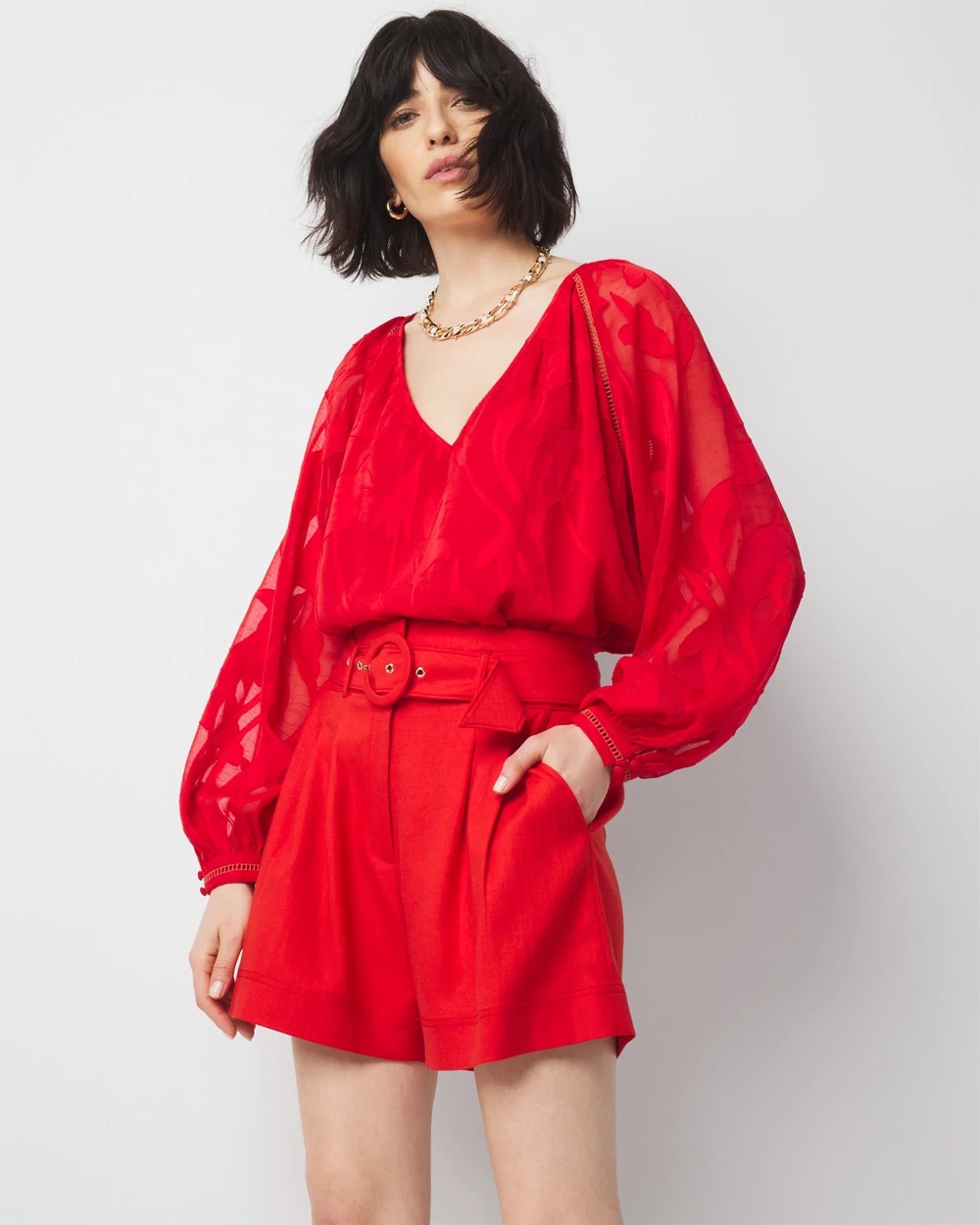 With breezy, functional diagonal pockets to house your small essentials, this fashion short sits high on the waist and is completed with a belt for a custom fit. Wear yours to weekend brunch or on your next vacation.