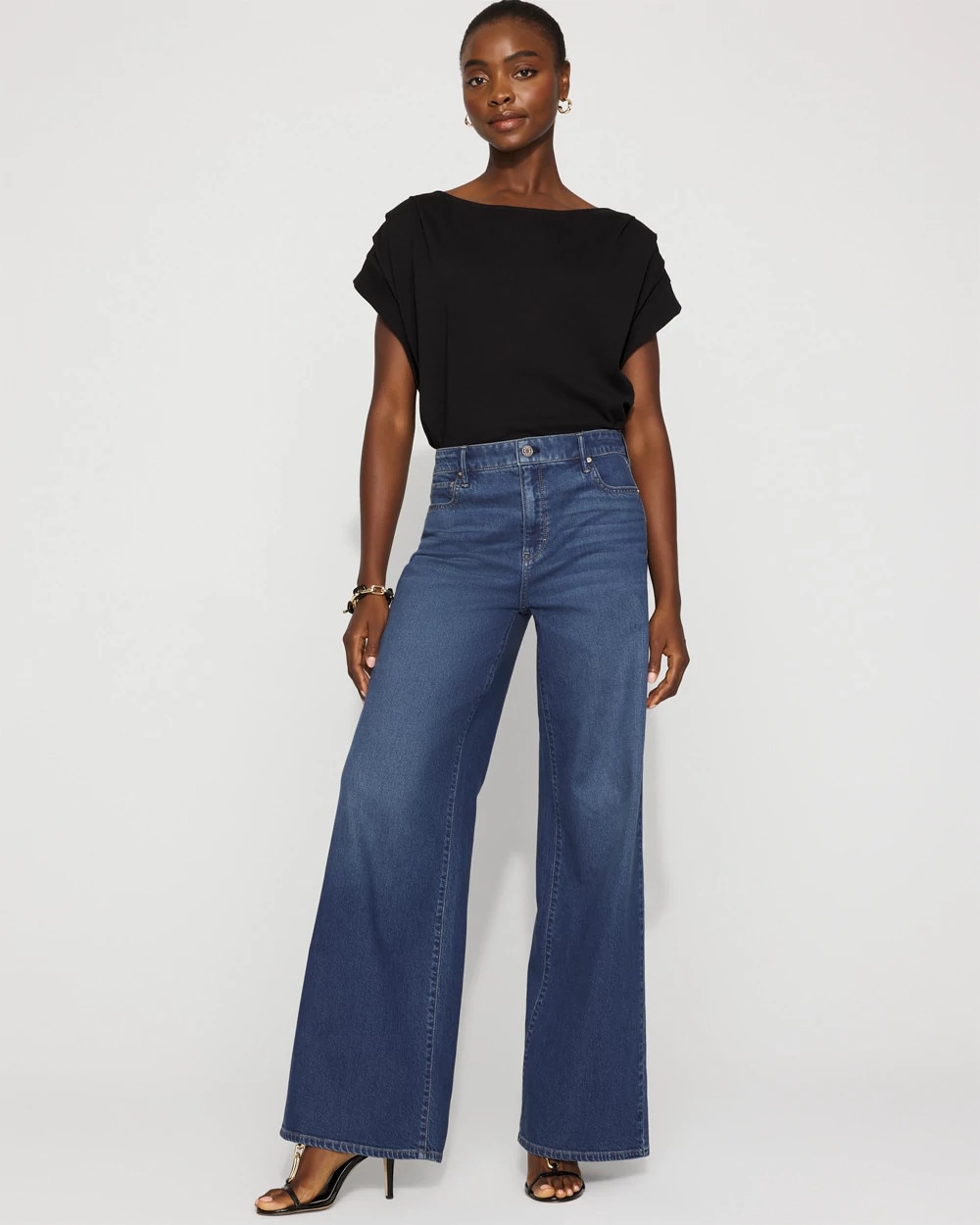 Meet the palazzo, our newest fashion wide-leg jean, designed with a dramatic super wide silhouette from hip to hem for a relaxed look. Cut from a drapey, lightweight denim fabric for maximum comfort and flow.