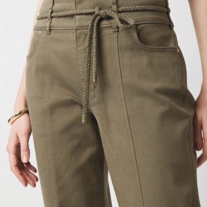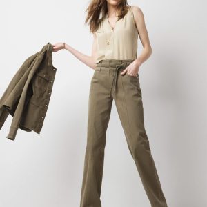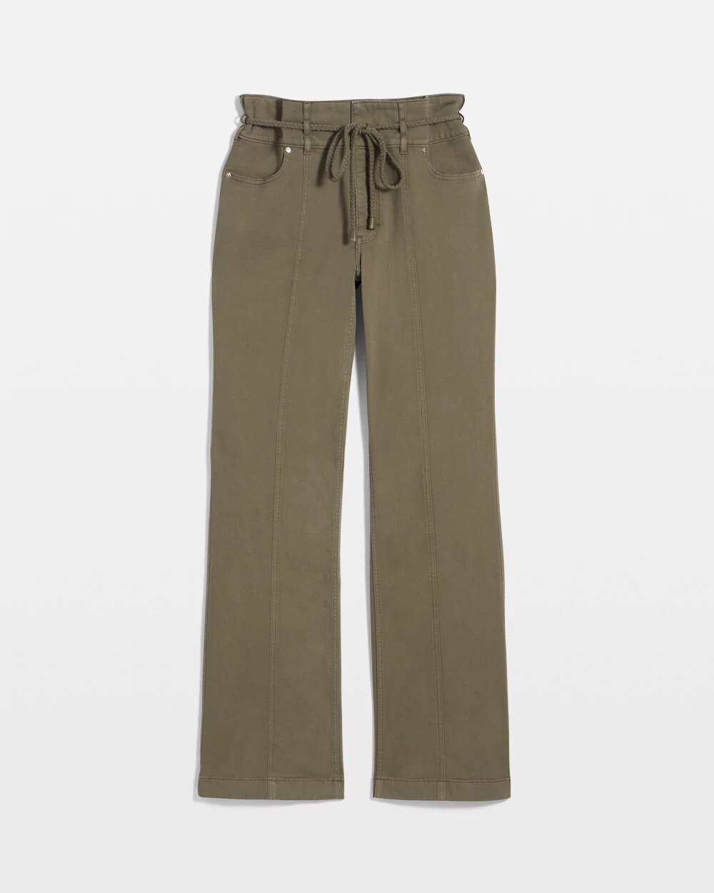 Part of our Pret Collection, these extra high-rise trouser pants have a removable braided belt and pintuck seams down the front of the leg.