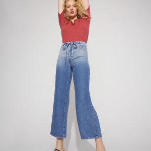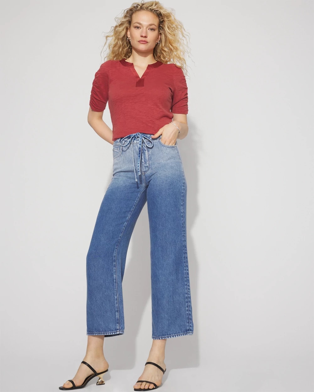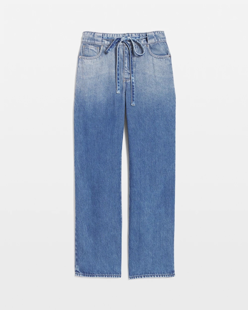 An ombre wash and tie-waist details elevate these cropped jeans that are crafted from Tencel, a lightweight, soft fabric. The tie belt is adjustable but not removable. Pair these five-pocket crops with sandals or heels.