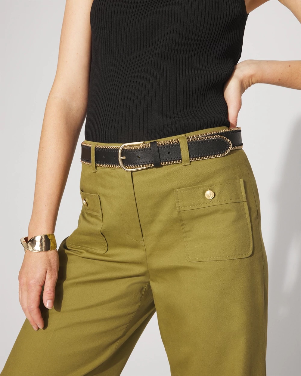Faux Leather Belt with Chain Trim