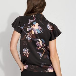 Gold buttons add a touch of shine to this feminine satin shirt. We’ve also given it flutter sleeves and a flattering Y-neckline. A stylish top to wear with pants to the office, or with a pair of jeans out to dinner .