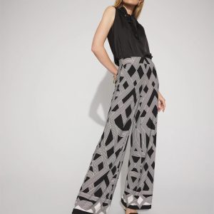 These statement making pants are cut from soft matte jersey, which gives you ease and a flattering drape. The bold geometric print with a border on the hem is also eye-catching chic. Pair with its match back top to complete the look.