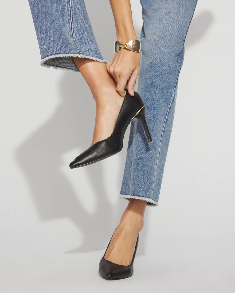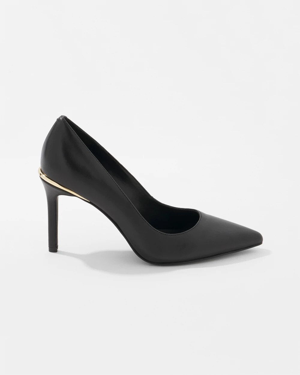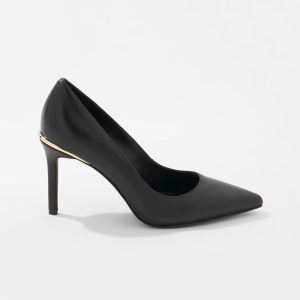 We’ve updated our classic comfort pump by adding a rim of gold around the top of the heel for subtle shine. This pump is made with comfort technology that’s designed to be worn for long hours from day to night, commute to cocktail, they are finished with a pointy heel.