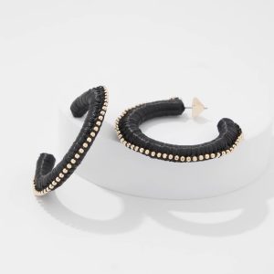Gold + Black Raffia Hoop Earrings