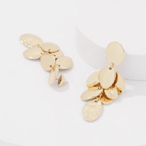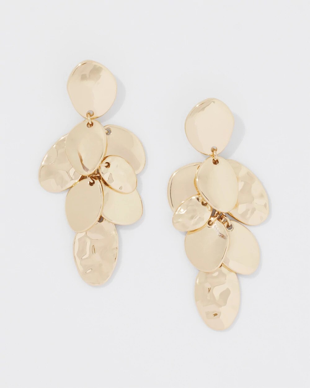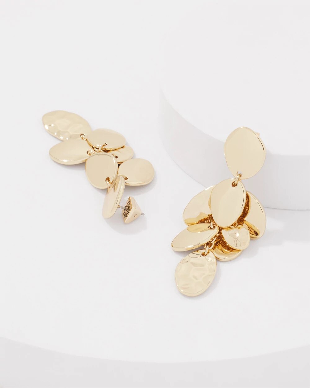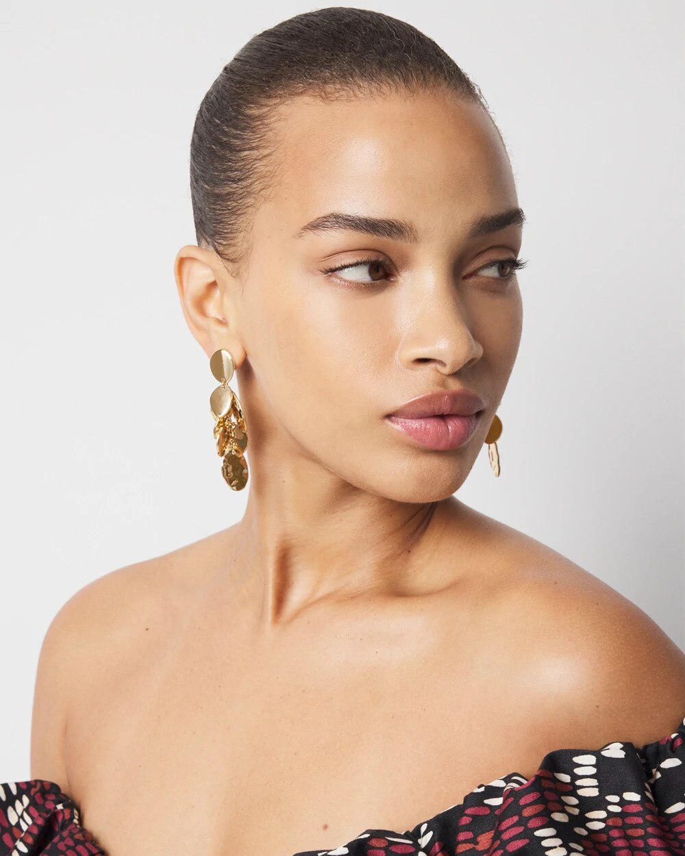 Add instant shine to your summer dresses with these drop earrings crafted from gold hammered discs. Wear them with the matching bracelet.