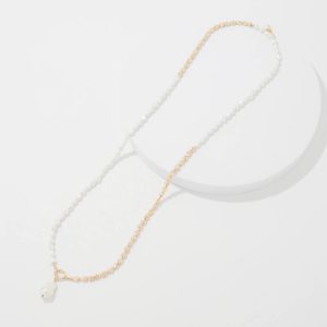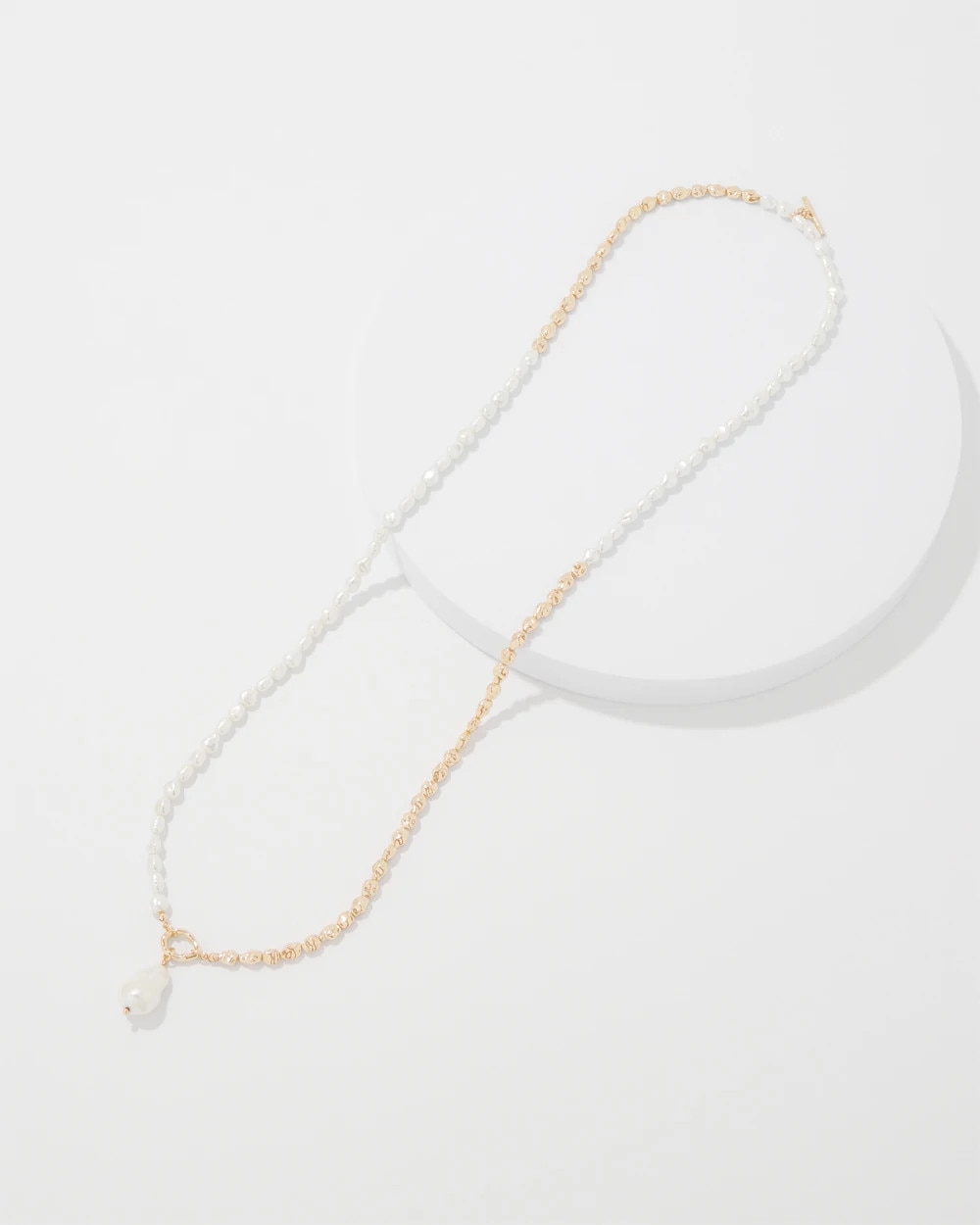A large single faux pearl is the focal point of this two-strand necklace that easily converts into one long single strand piece. An easy way to elevate any outfit. Mix and match with other pieces from our Baroque Pearl Collection.