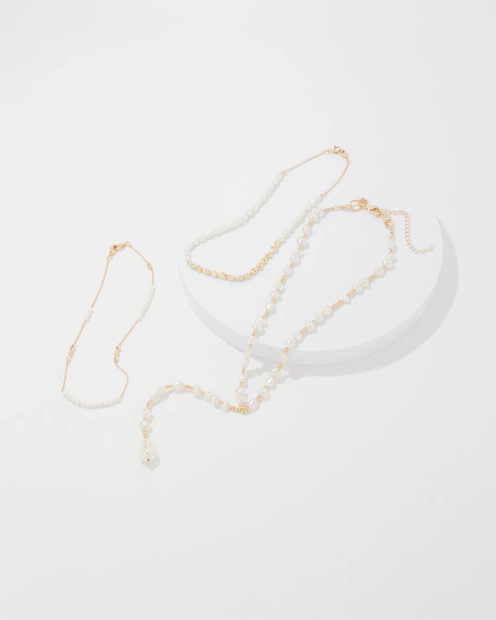 This accessory is as versatile as it is elegant. Designed with faux pearl and gold, this Y necklace converts to 3-single strands. Layer them together for a statement piece, or wear separately. Mix and match with other pieces from our Baroque Pearl Collection.