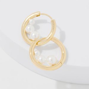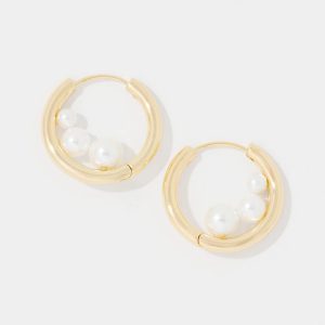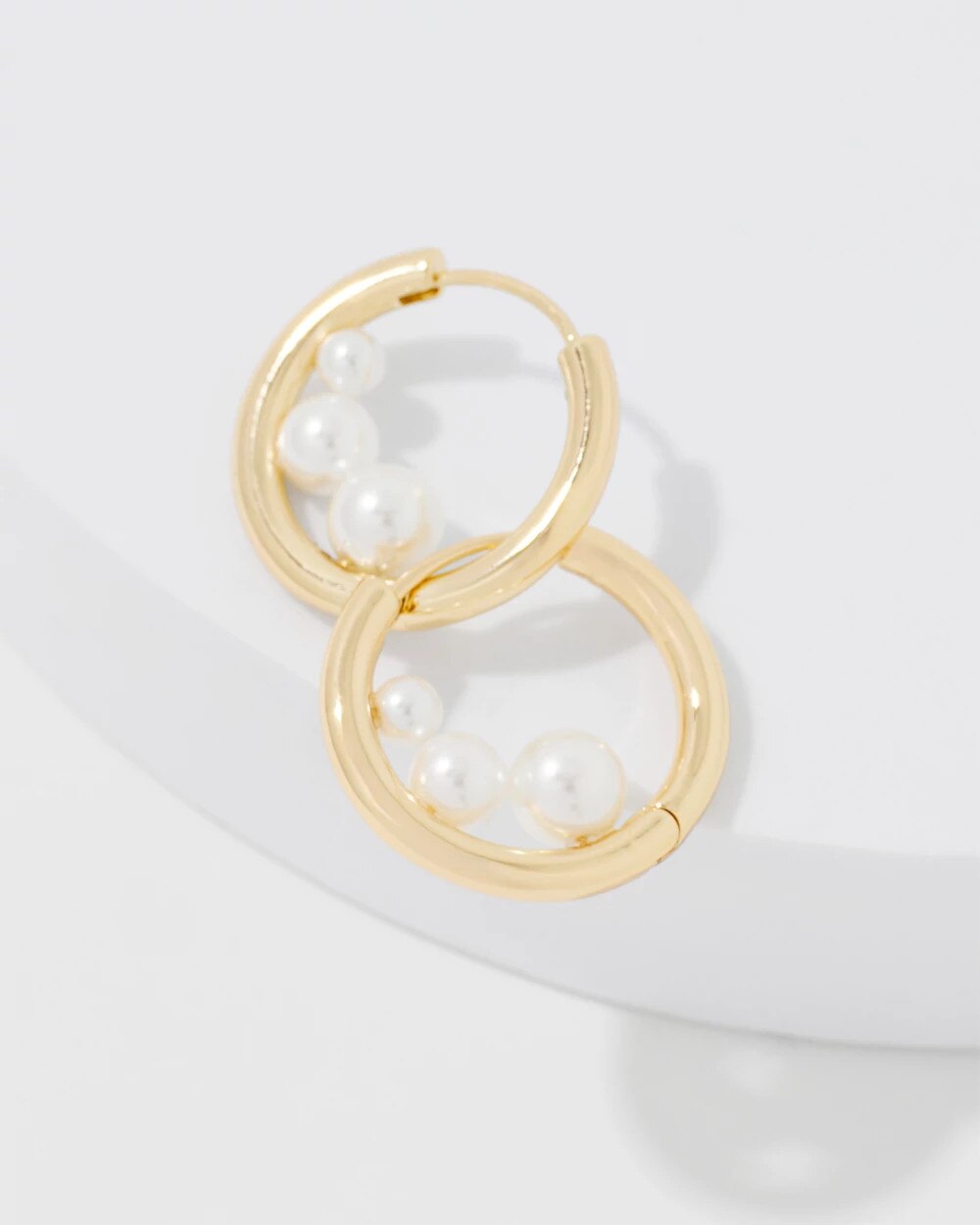 Three faux pearls sit inside gold hoops for a classic earring that will elevate your office look or casual outfits.