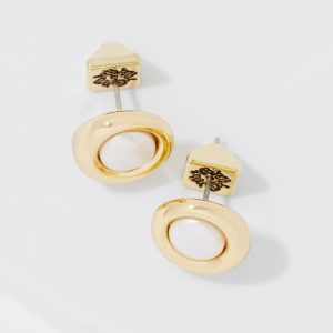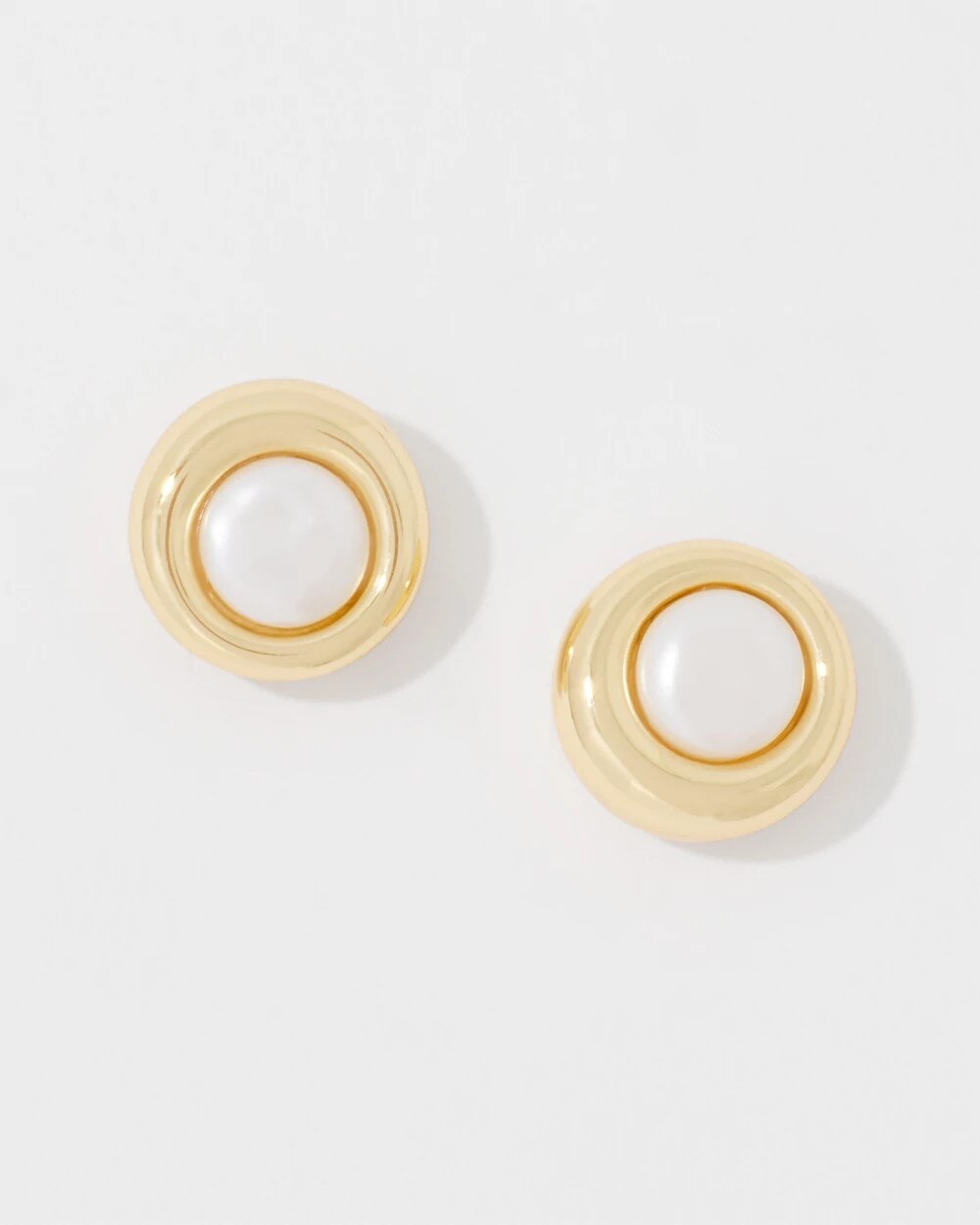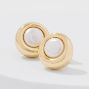 These timeless stud earrings have a faux pearl center ringed with gold metal. An easy and subtle way to add polish to your outfit.