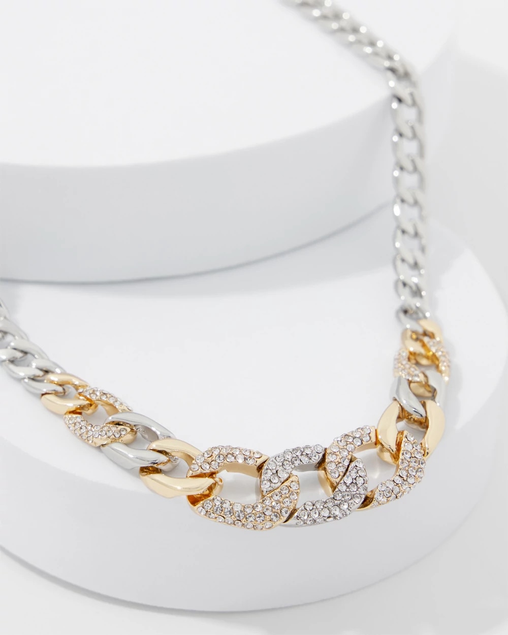 This single-strand necklace has a mix of gold, silver and pavé links that create a simple, yet stunning design. Pair with other pieces in the Mixed Metal Collection.