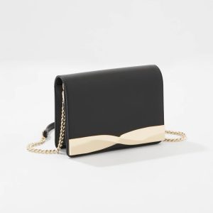 A twist of gold embellishes this classic fold over clutch purse. The gold chain strap is removable. Pair this clutch with our items in our Twisted Metals Collection of jewelry and accessories.