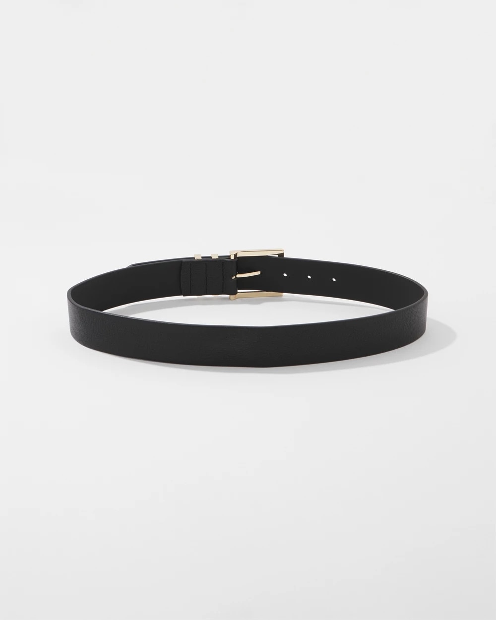 Designed with twisted gold keepers and gold buckle, this faux leather belt adds polish + chic style to your favorite jeans.