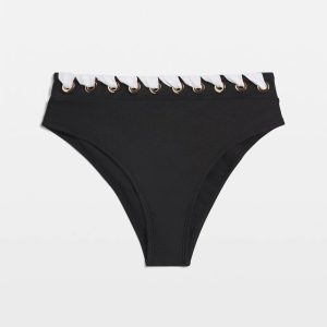 High-waisted with decorative lace-up grommet details on the waist, the Grommet Lace-Up Bottom will turn heads. Show it off when paired with a solid top or the matching bikini top.