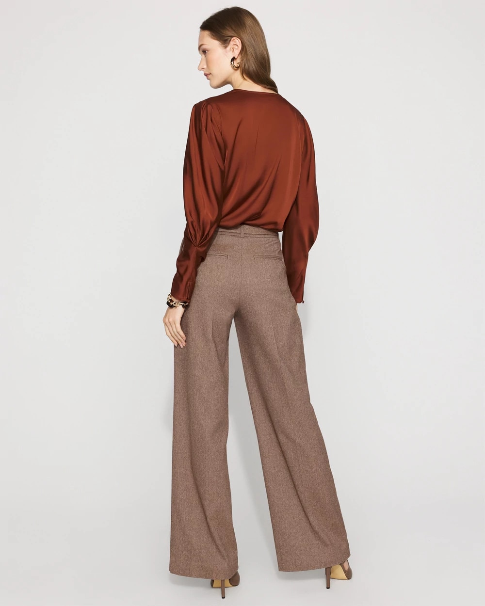 High-Rise Belted Tweed Wide-Leg Pant