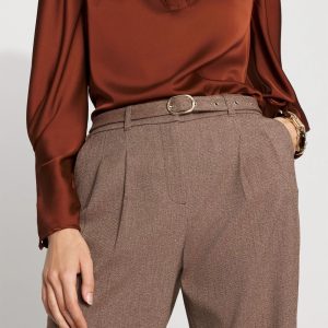 Fall outfitting just got easier with these pleated wide-leg pants cut from a classic tweed fabric. A detachable belt is designed with a gold buckle for a hint of shine.
