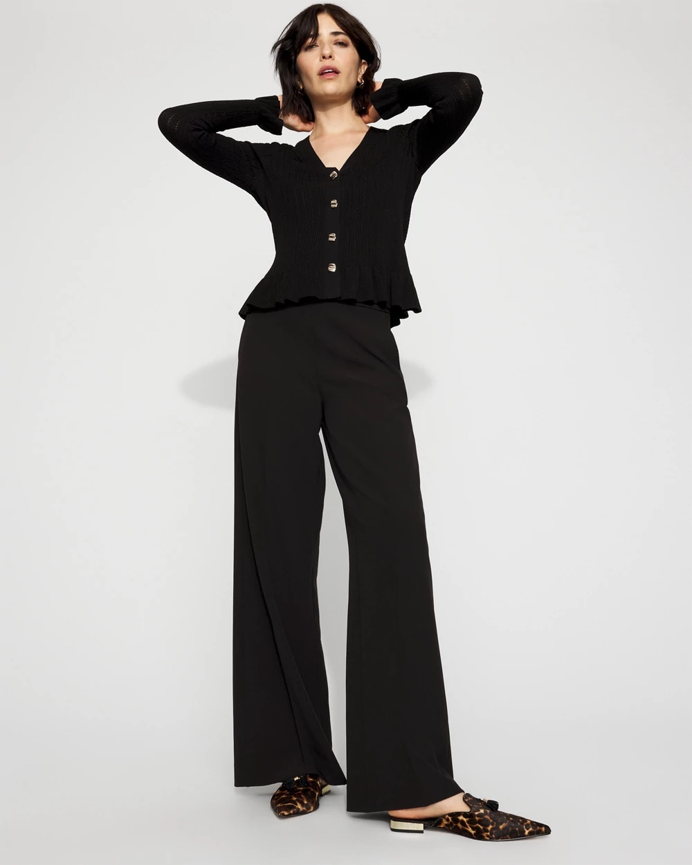 Crafted from a soft, drapey fabric, these wide-leg pants have a side zipper closure, giving you a smooth front. This look is ideal to pair with a fitted top from our WHBM FORME™ collection.