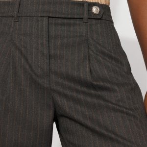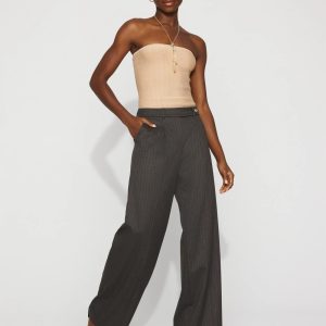 Taking inspo from classic menswear style, we designed these pinstriped wide-leg pants with front pleats and an extended tab closure on the waist.