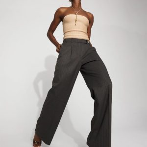 Taking inspo from classic menswear style, we designed these pinstriped wide-leg pants with front pleats and an extended tab closure on the waist.