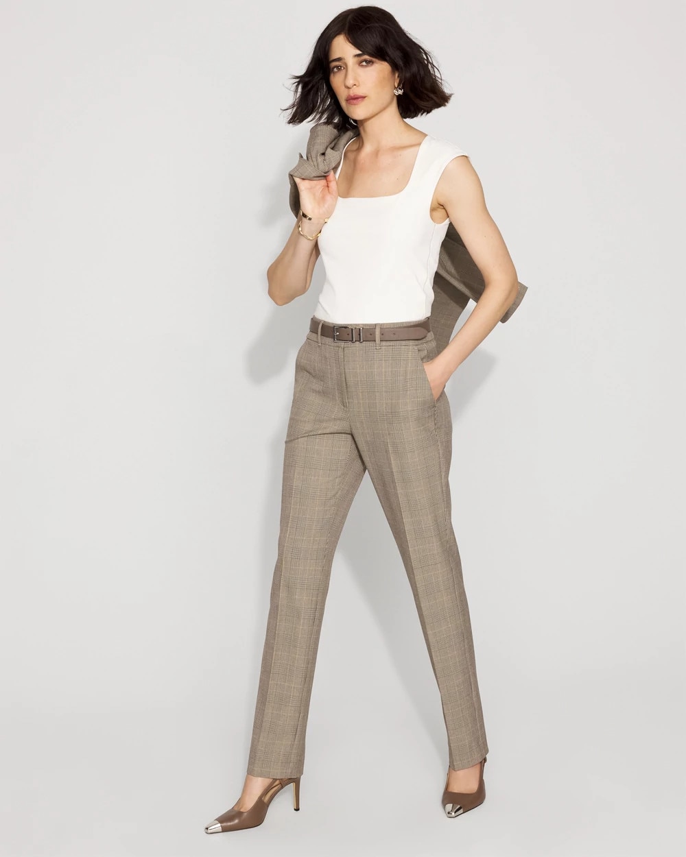 High-Rise Plaid Zoey Straight Pant