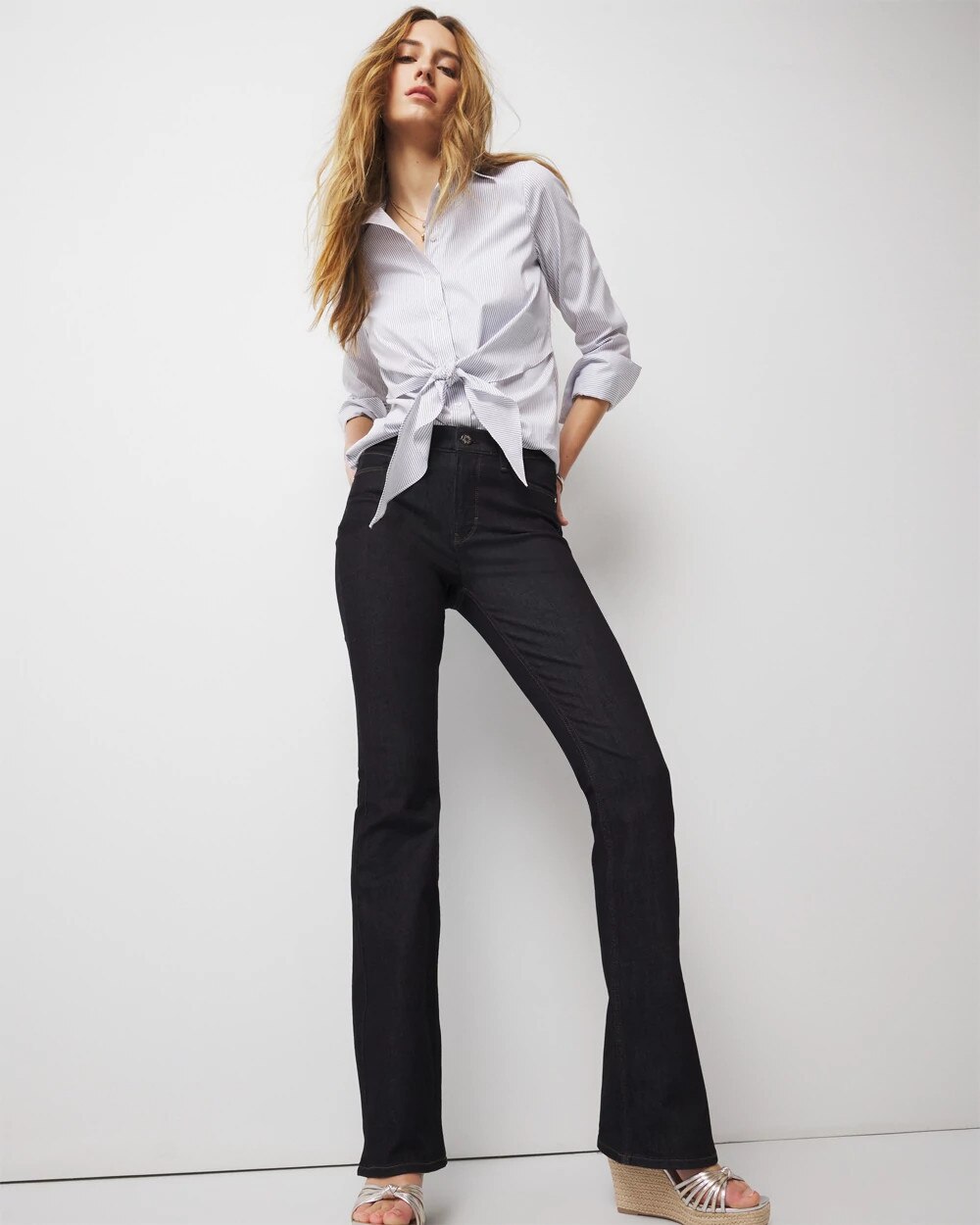 Flare jeans perfect for work days or weekends. Consider this your dressy blue denim for parties, nights out with friends or even more casual workdays.