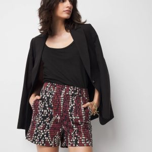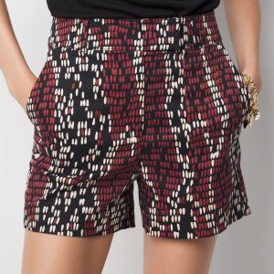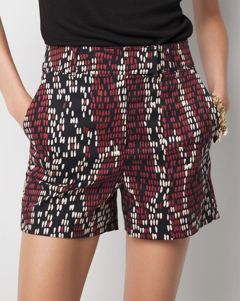 An abstract snake print turns these tailored shorts into a fashion statement. Designed with front slant and back welt pockets, these shorts are easy to dress up with sandals or heels.
