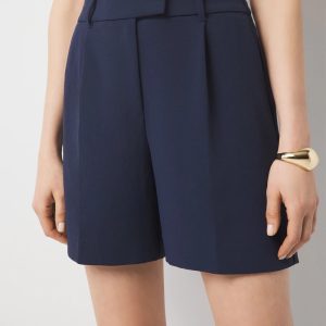 These timeless shorts are cut from a crepe fabric and have a flattering front pleat, belt loops and front pockets. The overall look is tailored, which makes these shorts worthy of dinner out with strappy sandals or to the over with a blazer and pumps. Pair with matching bustier or vest and our open front blazer.