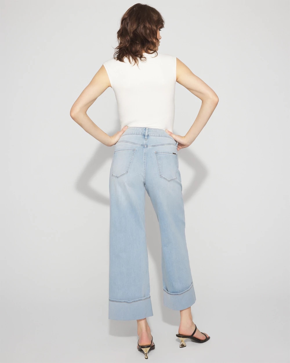 High-Rise Wide Leg Cuff Cropped Jean