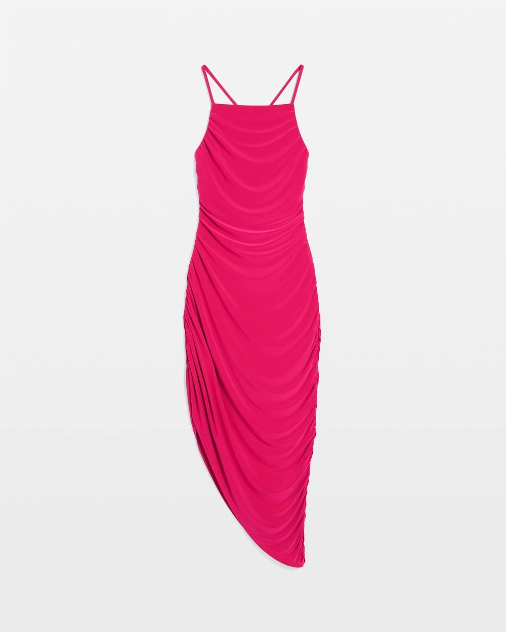 Jersey-Knit Ruched Midi Dress with Asymmetric Hem