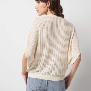 An open stitch pattern gives this cardi a slightly sheer look that’s perfect as a summer layer. Soft gold buttons and kimono sleeves make it fashion.